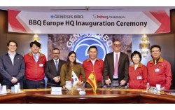 제너시스BBQ그룹은 최근 BLT F&B 그룹과 서울 송파구 사옥에서 유럽 진출 출정식을 열었다고 밝혔다. 윤홍근 제너시스BBQ 그룹 회장(오른쪽 네번째)과 토마스 BLT F&B 그룹 대표가 기념 사진을 촬영했다. 사진 제너시스BBQ 제네시스BBQ그룹이 본격적인 유…
