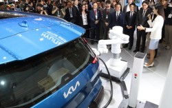 지난 8월 27일 부산 해운대구 벡스코 제1전시장에서 열린 '2025 기후산업국제박람회(WCE)'에서 김민석 국무총리 등이 현대자동차 부스를 찾아 전기차 충전시스템 등을 둘러보고 있다. 뉴스1 앞으로 전기 승용차(이하 전기차)를 운행하면 탄소 배출을 줄인…
