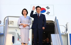 주요 20개국(G20) 정상회의 일정을 마친 이재명 대통령과 김혜경 여사가 지난 23일(현지시간) 다음 국빈 방문지인 튀르키예로 가기 위해 남아프리카공화국 요하네스버그 OR탐보 국제공항에서 공군 1호기에 올라 인사하고 있다. 연합뉴스 이재명 대통령의 국정수행 지지…