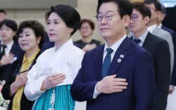 이재명 대통령과 김혜경 여사가 23일(현지시간) 남아프리카공화국 요하네스버그 샌튼 컨벤션센터에서 열린 동포 오찬간담회에서 참석자들과 국기에 경례하고 있다. 연합뉴스 이재명 대통령은 23일(현지시간) 남아프리카공화국 현지 동포들을 만나 재외국민 전자투표 시행에 대한…