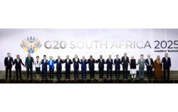 이재명 대통령이 22일(현지시간) 남아프리카공화국 나스렉 엑스포센터에서 열린 주요 20개국(G20) 정상회의에서 G20 정상 및 국제기구 수장들과 함께 기념촬영을 하고 있다. 왼쪽부터 막심 오레쉬킨 러시아 대통령실 부비서실장, 에드가르 아브람 아마도르 사모라 멕시코 재…