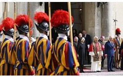 교황청 스위스 근위대. EPA=연합뉴스 교황청의 한 스위스 근위병이 성 베드로 광장을 찾은 유대인 여성들에게 침을 뱉는 시늉을 해 자체 조사를 받고 있다는 외신 보도가 나왔다. 10일(현지시간) 영국 일간 가디언 등에 따르면 이스라엘 작가 겸 연극 감독 미할…