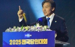 조국 조국혁신당 당대표 후보가 23일 충북 청주시 오스코에서 열린 조국혁신당 전국당원대회에서 정견 발표를 하고 있다. 뉴스1 [속보] 조국, 사면복권 3개월여 만에 혁신당 대표 당선