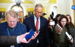 미국 연방정부 셧다운(일시적 업무정지) 사태 40일째를 맞은 9일(현지시간) 존 튠 미국 공화당 상원 원내대표가 워싱턴 DC 의회 상원 회의장 앞에서 취재진에 둘러싸여 걸어가고 있다. 로이터=연합뉴스 “40일이라는 긴 시간이 걸렸지만, 마침내 정부 셧다운…