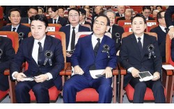 강훈식 대통령 비서실장(왼쪽부터), 주호영 국회부의장, 국민의힘 장동혁 대표가 21일 서울 동작구 국립서울현충원에서 열린 고 김영삼 전 대통령 서거 10주기 추모식에 참석하고 있다. 연합뉴스 김영삼(YS) 전 대통령 서거 10주기 추모식이 21일 서울 동작동 국립…