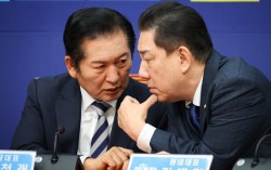 더불어민주당 정청래(왼쪽) 대표와 김병기 원내대표가 21일 서울 여의도 국회에서 열린 최고위원회의에서 대화하고 있다. 뉴스1 정청래 더불어민주당 대표가 21일 “내란전담재판부를 구성해야하지 않느냐는 논의가 또 수면으로 올라오고 있는 걸 잘 안다”며 “대통령 순방외…
