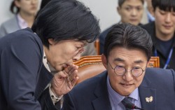 더불어민주당 언론개혁특별위원회 최민희 위원장과 노종면 의원이 지난달 20일 국회에서 열린 언론개혁특위 허위 조작정보 근절안 발표에서 대화하는 모습. 연합뉴스 더불어민주당 지도부가 당론 추진을 공언한 ‘허위조작정보 근절법’(정보통신망법 개정안)이 진보 진영 내부의 …