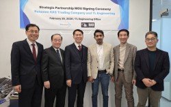 (왼쪽 3번째부터) 티엘엔지니어링의 서충옥 대표와 SAS Trading Company의 Varun Raj NarKar 대표를 비롯한 주요 임직원들이 ‘히트세이버’ 해외 진출 활성화를 위한 업무협약식에서 포즈를 취하고 있다. 코넥스 상장 기업인 ‘티엘엔지니…