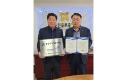광주신용보증재단 염규송 이사장(오른쪽)이 신연범 감사실장과 함께 인권경영시스템 인증 수여식을 진행 후 인증서와 인증 현판을 들고 기념촬영을 하고 있다. 중소벤처기업인증원(원장 엄진엽, KOSRE)은 광주신용보증재단(이사장 염규송)이 지난 20일 인권경영시…