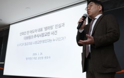 김선웅 법무법인 지암 변호사가 28일 오후 서울 종로구 교원종각빌딩에서 민희진 전 어도어 대표 '뉴진스 탬퍼링' 의혹에 관한 공개 기자회견을 하고 있다. [사진 연합뉴스] 민희진 전 어도어 대표 측이 하이브와의 소송 선고 한 달 여를 앞두고 자신이 뉴진스 멤버들을…