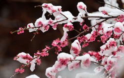 경칩을 이틀 앞둔 3일 강원 강릉시 성산면 외곽 마을에서 홍매화가 눈을 뒤집어쓴 채 봄과 겨울이 교차하는 풍경을 보여주고 있다. 내일(4일)은 전국이 대체로 맑겠지만 강원 영동과 경상권은 흐리겠다. 아침 최저기온은 -5∼4도, 낮 최고기온은 8∼14도로 예보됐다. 중부…