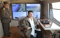 지난 3월 20일 북한 군수공업기업소에서 진행된 최신형 반항공(지대공)미사일 무기체계의 종합적 전투성능검열을 위한 시험발사 현장에 참석한 김정은 당 총비서의 모습. 노동신문=뉴스1 김정은 북한 국무위원장이 지난 23일 신형 지대공 미사일 시험 사격을 참관…