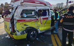 사고로 파손된 구급차. 연합뉴스TV 14일 오후 1시 13분쯤 경북 안동시 정하동 영가대교에서 환자를 이송하던 119구급차와 트럭이 충돌했다. 이 사고로 구급차에 타고 있던 환자 1명이 심정지 상태로 발견돼 병원으로 옮겨졌으나 숨졌다. 함께 구급차에 타…