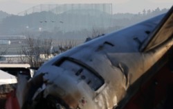 제주항공 여객기 참사 엿새째인 지난해 1월 3일 오전 전남 무안국제공항 참사 현장 위로 철새가 날고 있다. [뉴스1] 179명이 숨진 ‘12·29 제주항공 여객기 참사’가 발생한 전남 무안국제공항이 사고 전 조류충돌 예방활동의 범위를 법정 13㎞가 아닌 …