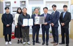 엄진엽 중소벤처기업인증원 원장(오른쪽 세 번째)과 김경민 밀양시시설관리공단 이사장(오른쪽 네 번째)이 양 기관 관계자들과 함께 노사상생 인증서 및 인증현판 수여식 후 기념촬영을 하고 있다. 중소벤처기업인증원(원장 엄진엽, KOSRE)은 밀양시시설관리공단(…