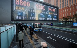 서울 시내버스가 총파업에 돌입한 13일 오전 서울역 버스환승센터 전광판에 시내버스 차고지 대기를 알리고 있다. 서울 시내버스가 파업으로 멈춰 서는 것은 2024년 이후 약 2년 만이다. 뉴스1 13일 오후 6시20분 서울 구로구 신도림역 지하 1층 환승 …
