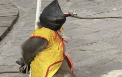 사진 웨이보 캡처 중국 북부 허베이성의 한 관광지에서 원숭이에게 검은 천을 씌우고 팔을 뒤로 묶은 채 '총살'하는 장면을 연출한 공연이 공개되면서 비판이 일고 있다. 26일 홍콩 성도일보 등에 따르면, 허베이성 스자좡시의 한 관광지에서 진행된 원숭이 공연 영…