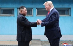 2019년 6월 30일 판문점에서 김정은 북한 국무위원장과 도널드 트럼프 미국 대통령이 만났다고 북한 조선중앙통신이 하루 뒤 보도했다. 사진은 조선중앙통신이 당시 홈페이지에 공개한 것으로, 군사분계선(MDL)을 사이에 두고 북ㆍ미 정상이 손을 맞잡은 모습. 연합뉴스 …