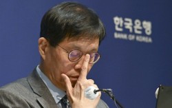 이창용 한국은행 총재가 27일 열린 기자간담회에 참석해 질문을 듣고 있다. 이날 금융통화위원회는 기준금리를 연 2.5%로 동결했다. [뉴스1] 한국은행이 네 차례 연속 기준금리를 동결하면서 금리 인하 사이클을 끝낼 수도 있다는 신호를 보냈다. 27일…