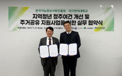 협약식 사진 한국지능정보사회진흥원(원장 황종성, 이하 NIA)은 대구한의대학교(총장 변창훈)와 ‘지역청년 정주여건 개선 및 주거공유 지원사업’업무협약을 실행에 옮기게 되었다고 밝혔다. 이번 사업으로 지역 미래 인재들이 안정적으로 정착할 수 있는 기반을 마…
