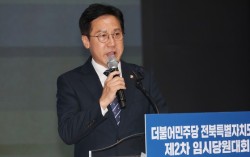 지난해 11월 2일 전주대학교 JJ아트홀에서 열린 더불어민주당 전북특별자치도당 임시당원대회에서 도당위원장 선거에 출마한 신영대 의원(군산·김제·부안갑)이 정견 발표를 하고 있다. 투·개표 결과 윤준병 의원(정읍·고창)이 신 의원을 누르고 도당위원장이 됐다. 연합뉴스 …