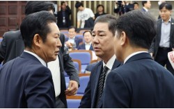 더불어민주당 정청래 대표와 김병기 원내대표, 문진석 원내수석부대표(왼쪽부터)가 13일 국회에서 열린 의원총회에서 대화하고 있다. 임현동 기자 더불어민주당이 발의를 예고한 검사징계법 폐지안과 검찰청법 개정안에는 검찰총장도 국회의 탄핵 없이 파면될 수 있도록…