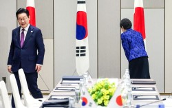 전민규 기자 다카이치 사나에 일본 총리가 13일 일본 나라현에서 열린 이재명 대통령과의 확대정상회담에 앞서 태극기를 향해 인사하고 있다. 이 대통령은 이날 1박 2일 일정으로 나라현을 방문했다. 나라현은 다카이치 총리 고향이…