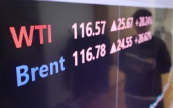국제 유가가 배럴당 100달러선을 돌파한 9일 서울 종로구 연합인포맥스에 설치된 모니터에 브렌트유와 서부텍사스산원유(WTI) 가격이 표시돼 있다. 연합뉴스 국제유가가 장중 한때 배럴당 120달러에 육박하며 세계 금융시장을 뒤흔들고 있다. 원유 수송의 핵심 통로인 …