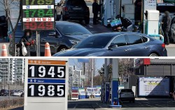 미국과 이스라엘의 이란 공습 여파로 국내 주유소의 휘발유와 경유 가격이 급등하고 있는 가운데 8일 대전 시내의 한 셀프주유소(사진 위)를 찾은 시민들이 주유하기 위해 차례를 기다리고 있다. 김성태 객원기자 이란과 미국·이스라엘의 무력충돌 이후 유가가 급등…