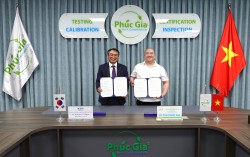KTR 김현철 원장(왼쪽)이 베트남 PGL 레 투언 휴 이사회장과 상호 협력체계 구축을 위한 업무협약을 체결했다. KTR(한국화학융합시험연구원, 원장 김현철)이 전기전자 제품의 베트남 수출에 필수적인 에너지 효율 인증 획득을 돕기 위해 현지 시험인증기관과…