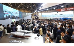 ‘미래 먹거리’ 선점 나서 지난 5월 말 부산 벡스코에서 열린 2025 국제해양방위산업전(MADEX)에서 관람객들이 HD현대의 무인수상함을 관람하고 있다. [연합뉴스] HD현대가 미국 방산테크 기업 안두릴인더스트리(이하 안두릴)와 손잡고 자율운항 무인수…