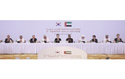 아랍에미리트(UAE)를 국빈 방문 중인 이재명 대통령이 19일(현지시간) 아부다비의 한 호텔에서 열린 한-UAE 비즈니스 라운드테이블에서 박수를 치고 있다. 왼쪽부터 정의선 현대자동차 그룹 회장, 압둘라 사이프 알 누아이미 주한UAE 대사, 류진 한국경제인협회 회장…