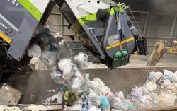 2일 서울 금천구 생활폐기물 수거 차량이 충남 업체의 암롤박스에 종량제 쓰레기를 넣고 있다. 천권필 기자 매일 80t(톤)의 생활쓰레기가 발생하는 서울 금천구는 요즘 쓰레기 처리에 비상이 걸렸다. 올해 초부터 충남·경기도에 있는 민간 폐기물 재활용업체 3…