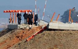 지난해 2월 26일 오후 전남 무안국제공항에서 항공철도사고조사위원회, 경찰, 국과수 관계자들이 방위각 시설(로컬라이저)을 살펴보고 있다. 연합뉴스 무안국제공항에서 발생한 ‘12·29 제주항공 참사’ 당시 항공기가 충돌한 콘크리트 방위각 시설(로컬라이저) …