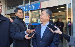 박일호 전 경남 밀양시장이 8일 창원지법에서 취재진 질문에 답하고 있다. 특정범죄가중법(뇌물) 위반 등 혐의로 기소된 박 전 시장은 이날 열린 1심 선고 공판에서 무죄를 선고받았다. 안대훈 기자 시장 재임 당시 아파트 건설 시행사 대표에게 수억원의 뇌물을…