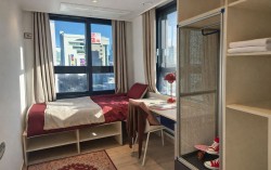 서울시,민간임대사업자 간담회 맹그로브 신촌점. 3인실의 모습. 한은화 기자 8일 오전 서울 마포구 노고산동 맹그로브 신촌점. 지하철 2호선 신촌역에서 도보 3분 거리인 이 16층 건물에는 277명(165개실)이 산다. 2023년 준공했다. 기업형 민간…