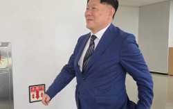 김정규 타이어뱅크 회장. 사진은 지난해 7월 23일 김 회장이 선고 전 대전고등법원 법정으로 향하고 있는 모습. 연합뉴스 대리점 명의를 위장해 수십억원대 세금을 탈루한 혐의로 하급심에서 징역 3년의 실형을 선고받은 김정규 타이어뱅크 회장이 2심 판단을 다시 받게 …