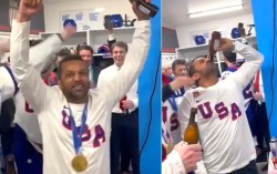 캐시 파텔 미국 연방수사국(FBI) 국장이 지난 22일(현지시간) 미국 남자 아이스하키 대표팀의 승리를 축하하며 선수들과 함께 맥주를 마시고 있다. 사진 엑스 캡처 미국 연방수사국(FBI) 수장이 밀라노·코르티나담페초 동계올림픽 현장에서 미국 남자 아이스하키 대표…
