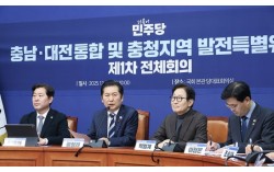 대전·충남 행정통합 논의에 속도가 붙으면서 통합단체장을 노리는 주자들의 움직임도 바빠지고 있다. 일부 주자는 출마 선언을 하거나 대전과 충남을 오가며 얼굴을 알리기 위해 애쓰는 모습이다. 정청래 더불어민주당 대표(왼쪽 둘째)가 지난해 12월 24일 오전 국회에서 열린 …