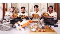 비빔밥 체험에 나선 샌프란시스코 자이언츠 선수단. 왼쪽부터 윌리 아다메스, 이정후, 최현석 셰프, 토니 바이텔로 감독. 젠슨 황이 ‘깐부 회동’을 연 서울 삼성동 치킨집도 방문했다. 장진영 기자 “이정후가 얼마나 좋은 사람인지 보여주고 싶었습니다. 그래서…