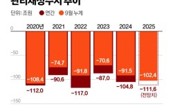 올해 9월까지 나라살림 적자가 100조원을 넘어섰다. 13일 기획재정부가 발표한 ‘월간 재정동향 11월호’에 따르면 실질적인 나라살림을 보여주는 관리재정수지는 9월 말까지 102조4000억원 적자를 기록했다. 적자 규모는 1~9월 기준으로 코로나 팬데믹이었던 2020년…
