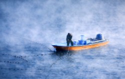 6일 아침 물안개가 피어오른 강원 인제군 소양호 일원에서 어부가 조업하고 있다. 수요일 7일은 아침 기온이 -5도 안팎까지 내려가겠으며 경기 동부와 강원 내륙·산지, 충북, 전북 동부, 제주 등 일부 지역에는 비나 눈이 이어지겠다. 기상청에 따르면 7일 아침 최저기온은…