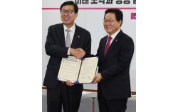 박형준 부산시장(왼쪽)과 박완수 경남도지사가 지난해 6월 17일 부산시청에서 미래 도약과 상생 발전을 위한 부산 경남 공동합의문을 채택한 뒤 기념촬영을 하고 있다. 중앙포토 ‘부산·경남 행정통합이 필요하다’는 시·도민 의견이 절반이 넘는다는 여론조사 결과…
