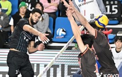 현대캐피탈 아웃사이드 히터 레오(왼쪽)가 강력한 스파이크로 OK저축은행 블로킹 벽을 뚫어내고 있다. [사진 KOVO] 프로배구 V리그 역사를 두 시기로 나눈다면, 레오(35.본명 레오나르도 레인바)가 그 기준 중 하나가 될 거다. 레오 이전과 이후로. V리그 기록…
