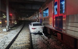 경의중앙선 열차와 충돌한 음주 차량. 서울 용산소방서 제공 5일 용산소방서와 경찰 등에 따르면 사고는 지난 4일 오후 11시 55분쯤 용산구 서빙고동 북부 건널목에서 발생했다. 음주 상태로 운전하던 승용차가 철로에 빠진 뒤, 한남역에서 서빙고역 방향으로 이동하던 …