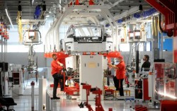 미국 캘리포니아주 프리몬트의 테슬라 공장에서 직원들이 교육 및 공구 보정용으로 사용되는 모델 S를 점검하고 있다. 로이터=연합뉴스 미국 캘리포니아주 프리몬트 테슬라 공장에서 근무하던 기술자가 로봇에 의해 공격을 받아 중상을 입었다며 테슬라와 일본 로봇 제…