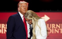 도널드 트럼프 미국 대통령(왼쪽)이 21일(현지시간) 애리조나주 글렌데일에서 열린 보수 청년단체 활동가 찰리 커크의 추모식에서 고인의 부인 에리카 커크를 포옹하고 있다. AP=연합뉴스 도널드 트럼프 미국 행정부가 보수 청년활동가 찰리 커크의 추모식을 기화…