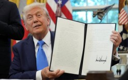 도널드 트럼프 미국 대통령이 19일(현지시간) 미국 워싱턴 D.C. 백악관 오벌 오피스에서 자신이 서명ㄴ H-1B 비자 수수료 인상 포고문을 들어보이고 있다. 로이터=연합뉴스 미국 정부가 ‘전문직 비자’로 불리는 H-1B 비자 수수료를 1인당 연간 10만 달러(약…