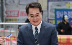6·3 지방선거 경기도지사에 도전하는 김동연 경기도지사가 24일 서울 영등포구 여의도 더불어민주당 중앙당사에서 열린 광역단체장 후보 면접에 참석하며 취재진 질문에 답하고 있다. 연합뉴스 6·3 지방선거를 100여일 앞두고 실시된 지역 언론 3사의 여론조사…
