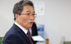 사의를 표명한 이학재 인천국제공항공사 사장이 25일 오전 인천국제공항 제1여객터미널 기자실에서 열린 기자간담회에 참석해 발언을 하고 있다. 뉴시스 사의를 밝힌 이학재 인천국제공항공사 사장이 오는 6·3 지방선거 불출마를 선언했다. 이 사장은 25일 인천국제공…
